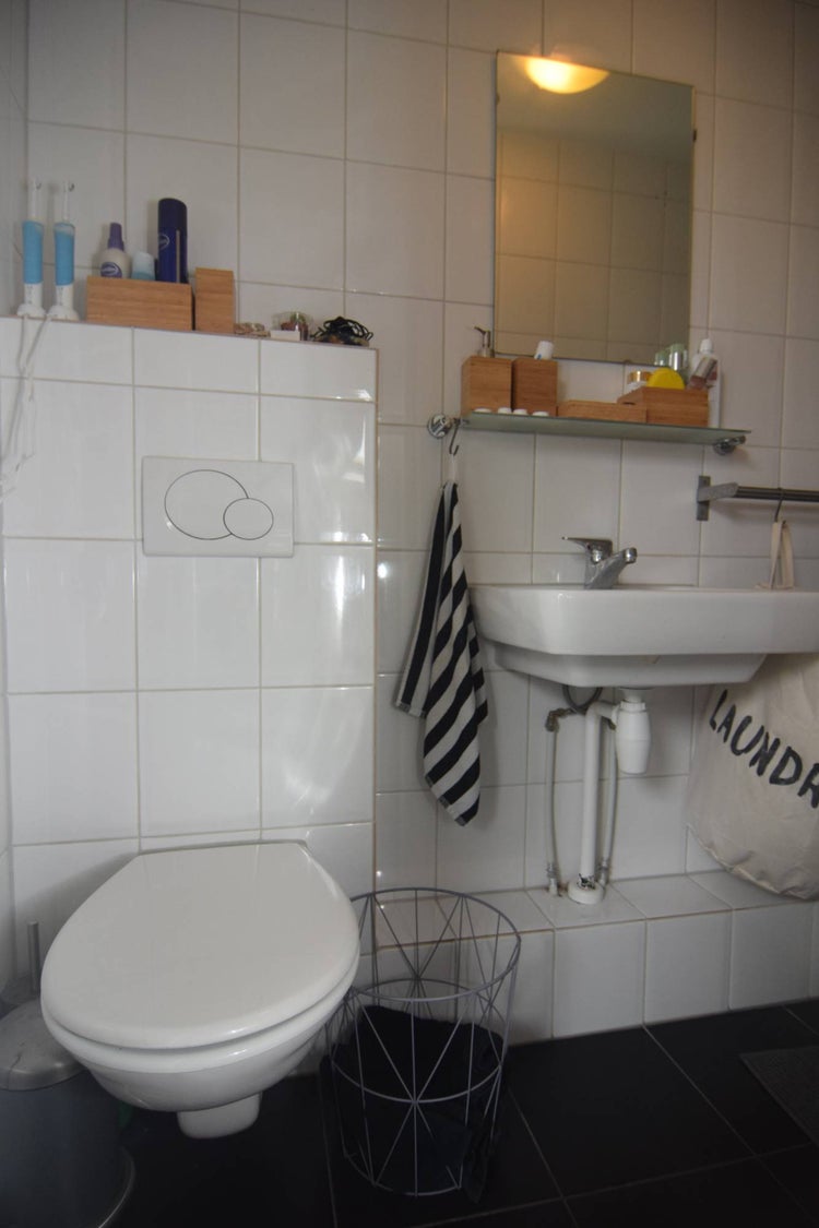 The entire studio is neatly finished with white walls and a laminate floor. You can use the washing machine and dryer together with the other residents, which are located on the first floor.