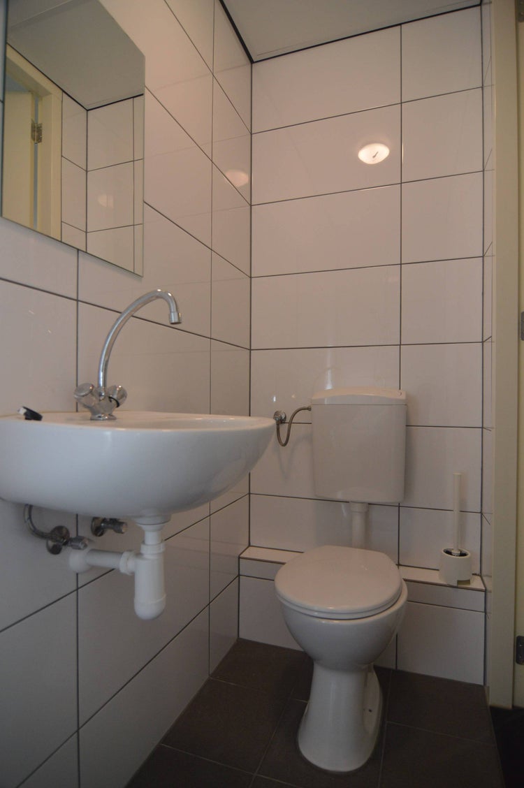Je komt binnen via de gezamenlijke entree waar zich het trappenhuis en de brievenbakjes bevinden. Het pand heeft 3 verdiepingen en deze studio is op de begane grond gelegen. De studio bevindt zich aan de achterzijde van het pand en heeft een oppervlakte van ca. 18 m². De studio bestaat uit een woon-/slaapkamer en heeft een eigen badkamer, de badkamer is voorzien van een douche, wastafel en toilet. Tevens beschikt de studio over een eigen koel-/vrieskast. Er zijn twee gezamenlijke keukens aanwezig waar je gebruik kunt maken, deze zijn uitgerust met een kookplaat, afzuigkap, combimagnetron, wasmachine en droger. Tevens is er een mogelijkheid voor het stallen van de fietsen op de bijbehorende binnenplaats.