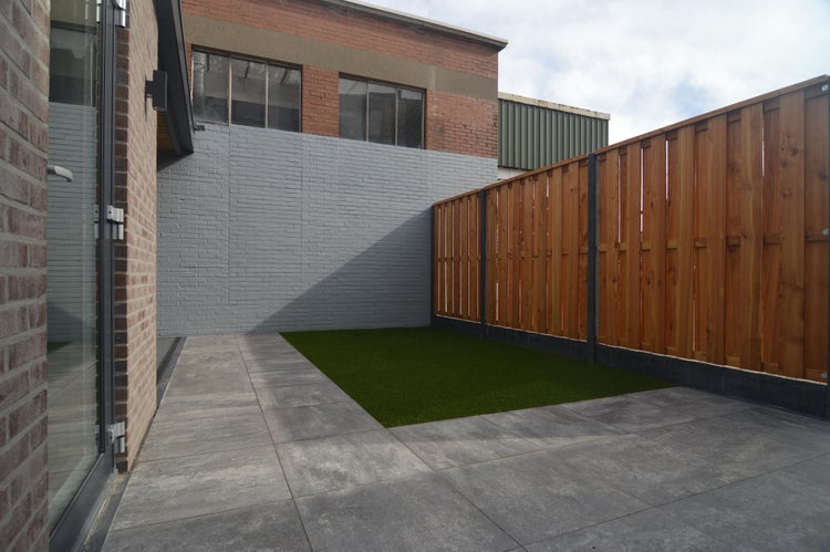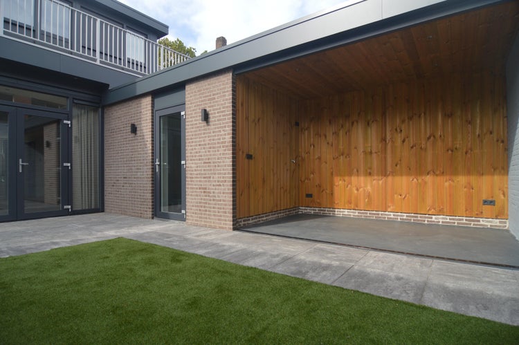 In de tuin kan je heerlijk genieten van de late zon en heb je een mooie veranda. De tuin is onderhoudsvriendelijk door het kunstgras.